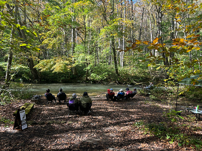 奥入瀬渓流散策の快適性向上のために、臨時の休憩スポットを設置します。ぜひ、奥入瀬渓流のせせらぎ音、風の音など体感しながらのひと休みはいかがですか。