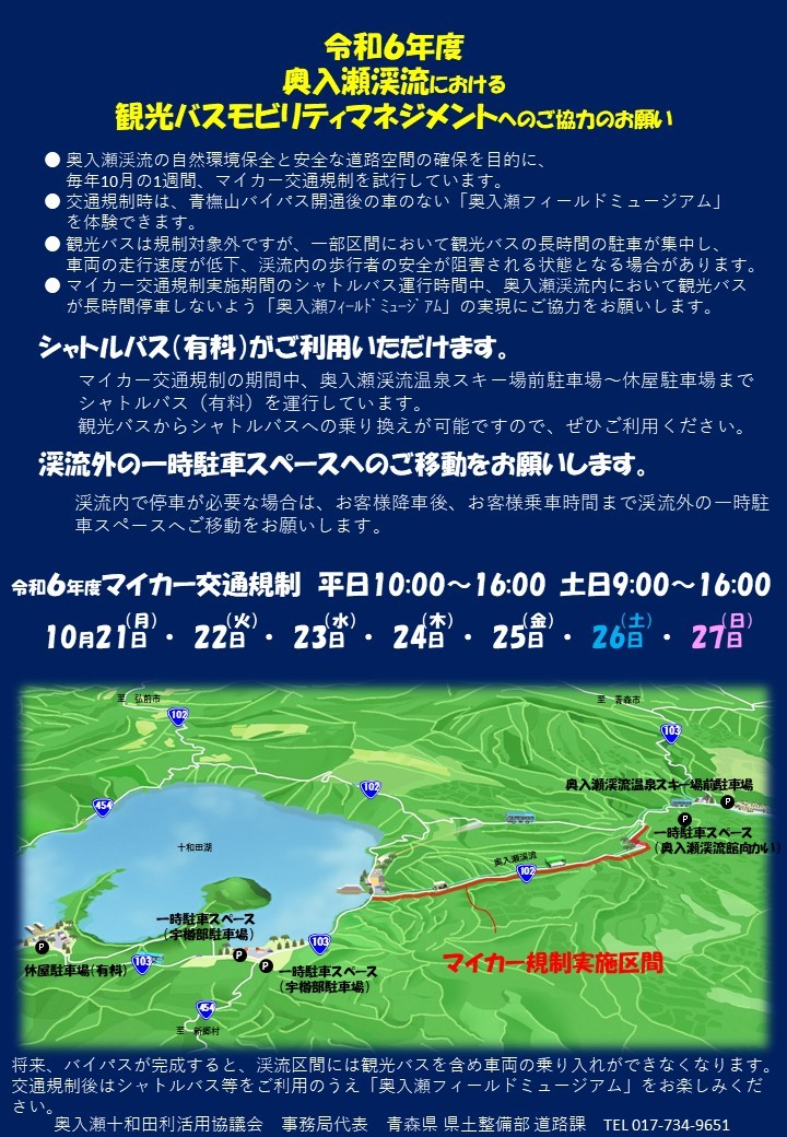 奥入瀬渓流のマイカー交通規制や期間中の過ごし方に関するよくある質問のご紹介です。