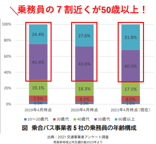 - 青森県でも、将来、運転手不足が予想されています。自動運転が普及すると、地域公共交通の確保・維持の1つの解決策になると期待されています。